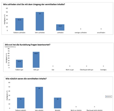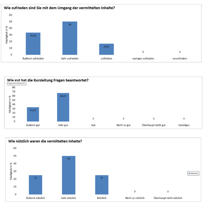93,3% schätzten es sehr, dass alle ihre Fragen beantwortet wurden und 80% fanden die fachliche Kompetenz sehr gut.